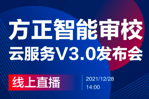 12月28日,“方正智能審校云服務(wù)V3.0新版本發(fā)布會(huì)”直播活動(dòng)召開(kāi),方正智能審校V3.0正式發(fā)布。新版本致力于為用戶(hù)量身...