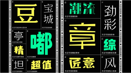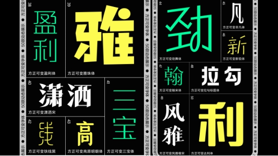 可變字體技術(shù)是字庫技術(shù)的最新熱點,它允許單個字體文件同時支持多個字體形態(tài),實現(xiàn)單軸或者多軸設(shè)計空間,讓設(shè)計師獲得前所未有的自由度和操作上的便利性,以及更小體積的字體文件與更快的響應(yīng)速度。方正字庫緊隨全球技術(shù)趨勢,本次大會推出了方正可變蘭亭黑、方正可變悠黑、方正可變悠宋、方正可變風(fēng)雅楷宋、方正可變忠義宋、方正可變高原明朝體、方正可變嘟黑、方正可變拉勾標(biāo)題體、方正可變鐵線黑、方正可變絲帛體、方正可變雅珠體、方正可變新綜藝黑、方正可變創(chuàng)黑、方正可變豆神大語文體等50款中文可變字體產(chǎn)品,可以滿足創(chuàng)意者各種不同的需要。