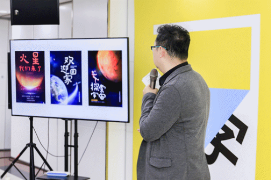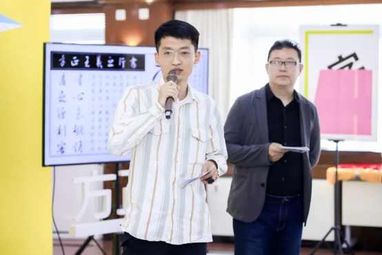 ▲字體應(yīng)用單元評委代表黑一烊公布并點評獲獎作品