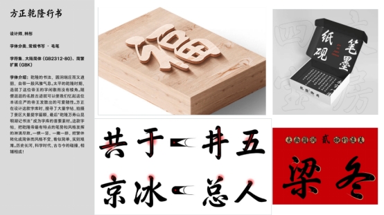 當(dāng)天的設(shè)計大會現(xiàn)場,方正字庫設(shè)計總監(jiān)汪文帶大家回顧了“中華精品字庫工程”一期和二期的全部35款字體成果:方正甲骨文、方正石門頌隸書、方正乙瑛碑隸書、方正西狹頌隸書、方正索靖章草、方正王獻(xiàn)之小楷、方正爨寶子碑楷書、方正好太王碑隸書、方正石門銘楷書、方正鄭文公碑楷書、方正張猛龍碑楷書、方正泰山金剛經(jīng)隸書、方正褚遂良楷書、方正孫過庭草書、方正李邕行書、方正靈飛經(jīng)小楷、方正顏真卿楷書、方正柳公權(quán)楷書、方正楊凝式行書、方正蘇軾行書、方正黃庭堅行書、方正米芾行書、方正趙佶瘦金書、方正趙孟頫楷書、方正趙孟頫行書、方正文征明行草、方正文征明小楷、方正董其昌行書、方正王鐸行草、方正八大山人行楷、方正魯迅行書、方正沈尹默行書、方正舒同行書、方正啟功行楷、方正劉炳森隸書,讓觀眾朋友領(lǐng)略了古老書法藝術(shù)在信息時代下的風(fēng)采。目前這些字體已在新聞出版、影視傳媒、網(wǎng)絡(luò)推廣、短視頻等眾多領(lǐng)域廣泛應(yīng)用。